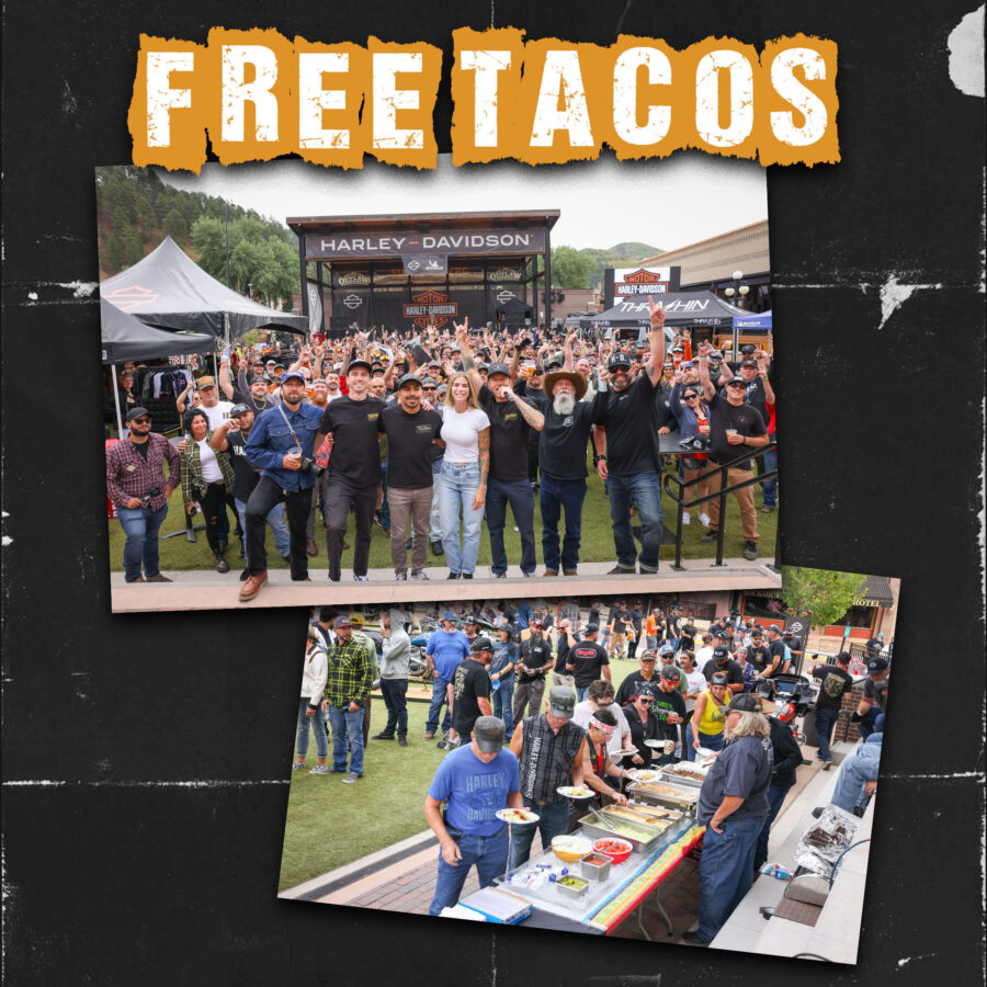 This isn’t just a scenic ride—it’s a chance to connect with fellow riders, hang out with the Thrashin’ Supply team, and enjoy free tacos once you roll into Deadwood. Expect a laid-back atmosphere with good vibes and plenty of rad bikes. And did we menion… Free tacos!!!